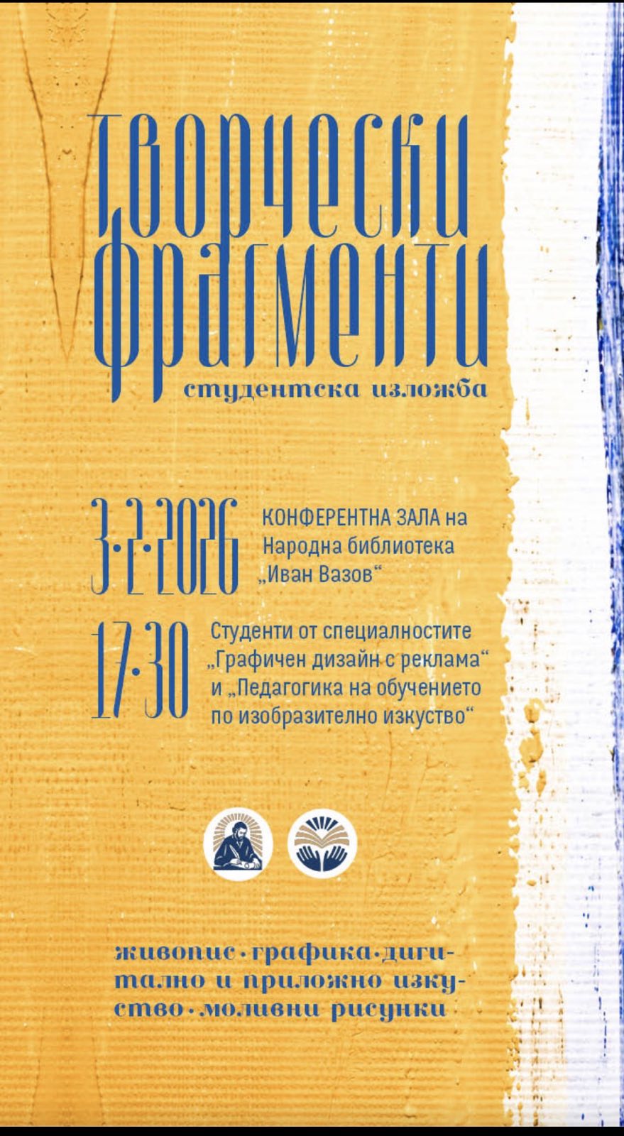 На 03.02.2026 г. от 17:30 ч. в „Конферентна зала“ на Народна библиотека „Иван Вазов“ – Пловдив се откри изложба на студенти от специалностите „Графичен дизайн с реклама“ и „Педагогика на обучението по изобразително изкуство“ към катедра „Естетическо възпитание“ при Педагогическия факултет на ПУ „Паисий Хилендарски“.