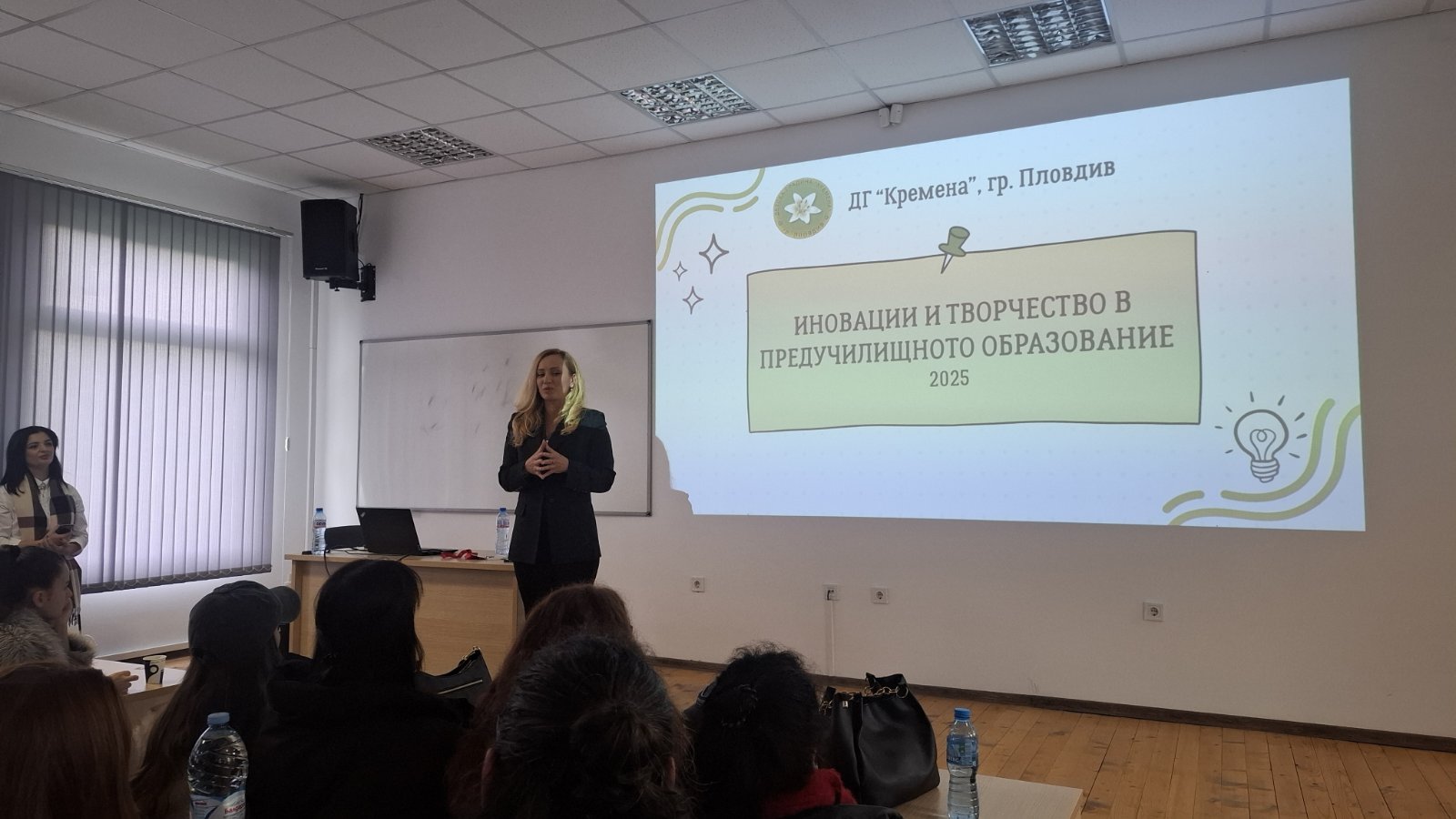 По време на срещата гост-лекторите представиха своя професионален опит и практика, характеризирани с интегрирането на иновации, традиции и креативност в съвременното предучилищно образование. Аудиторията имаше възможност да се запознае с философията на детската градина относно ефективното партньорство и работа с родители. Специален фокус беше поставен върху реализираните проекти, интерактивни дейности и творчески работилници.