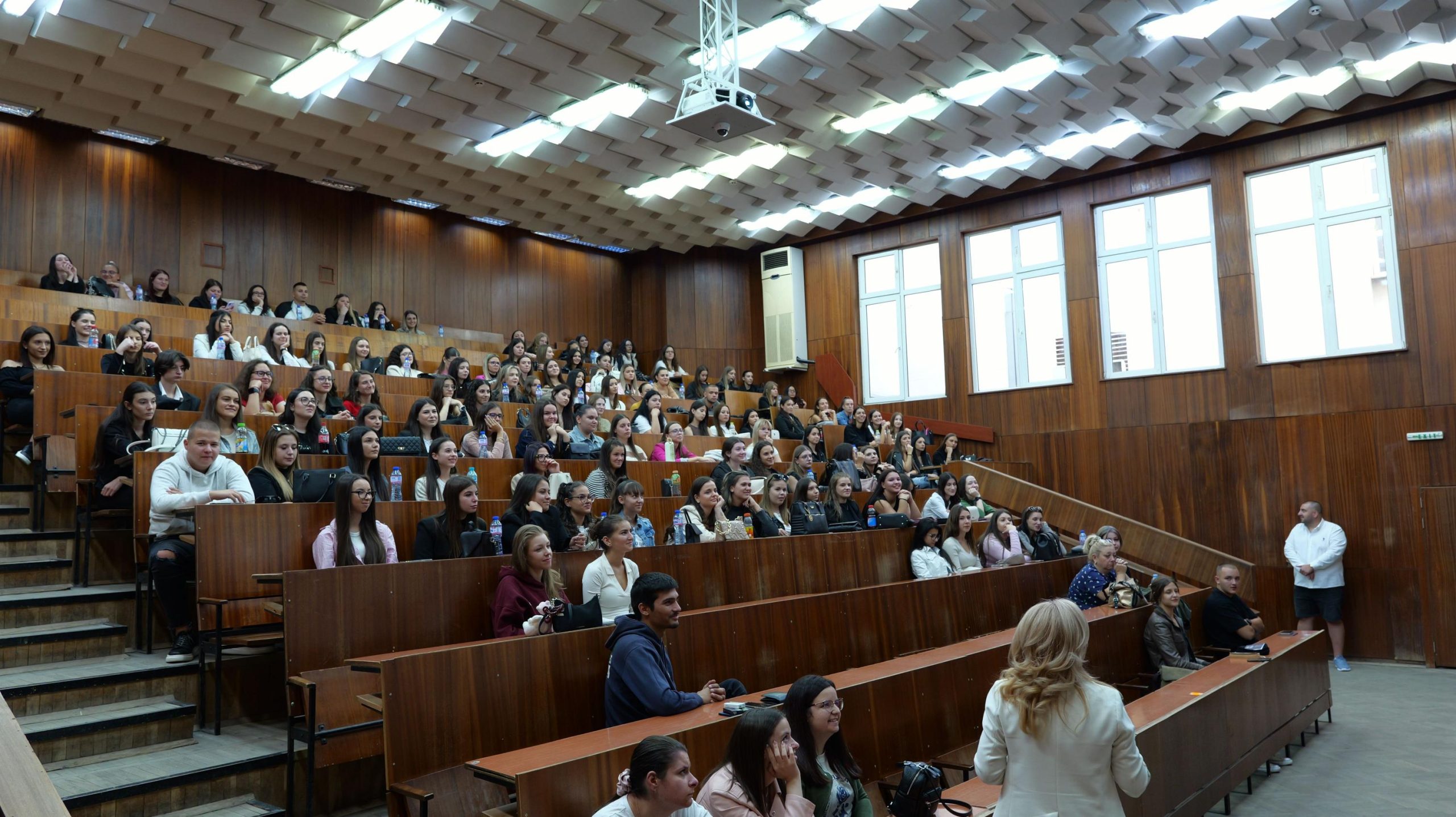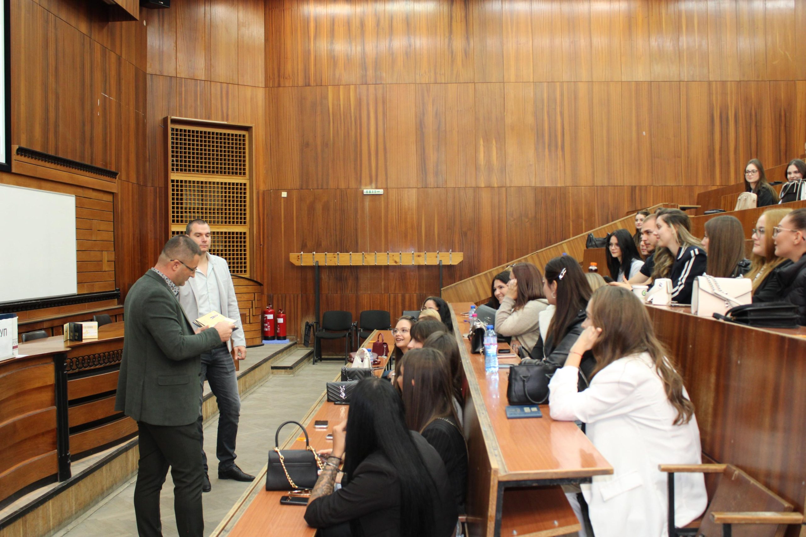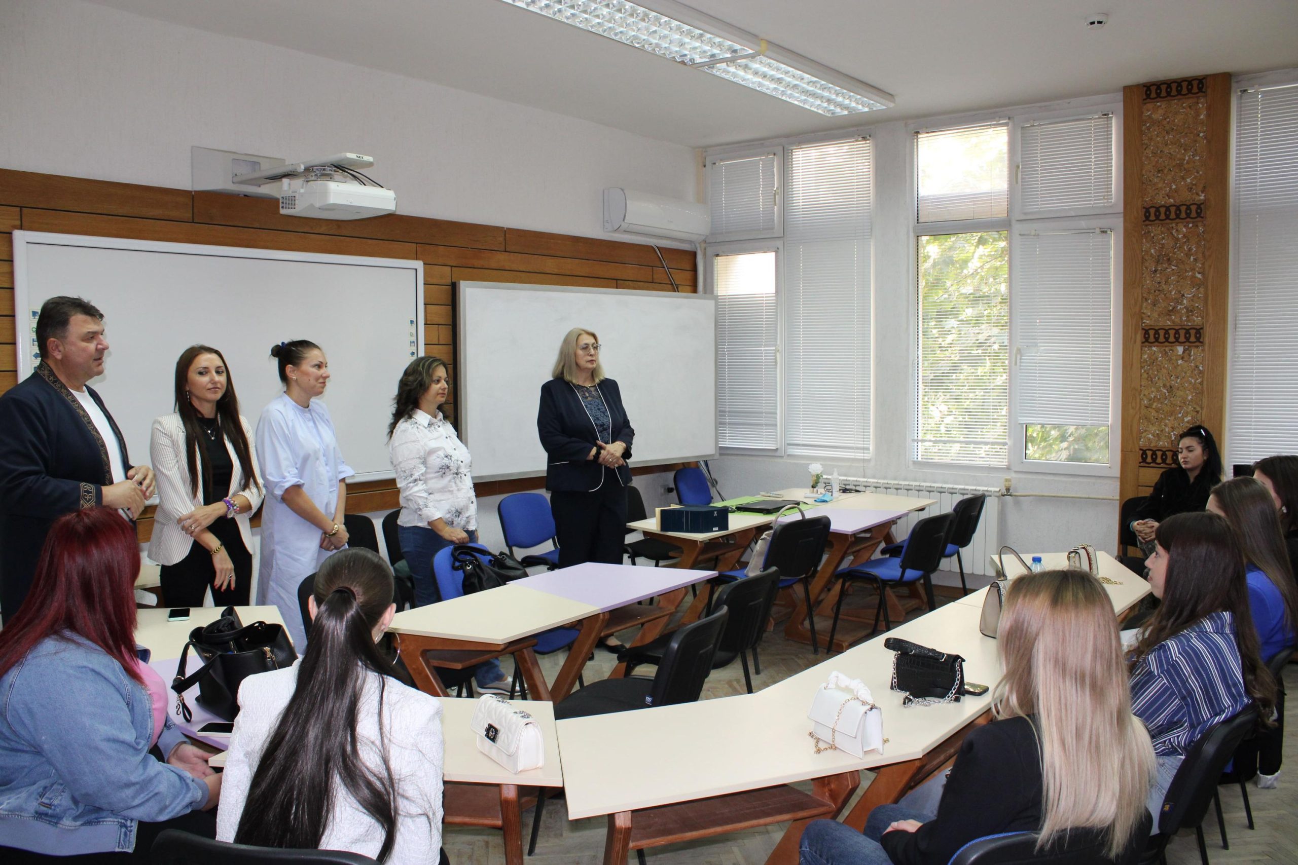 От 14:00 ч. деканът на факултета проф. д-р Владимира Ангелова проведе първа работна среща с курсовите отговорници на всички 16 бакалавърски програми, както и с активните студенти от първи курс. Тя представи структурата на факултета, възможностите за комуникация чрез сайта и социалните мрежи, както и ресурсите, които улесняват студентския живот.