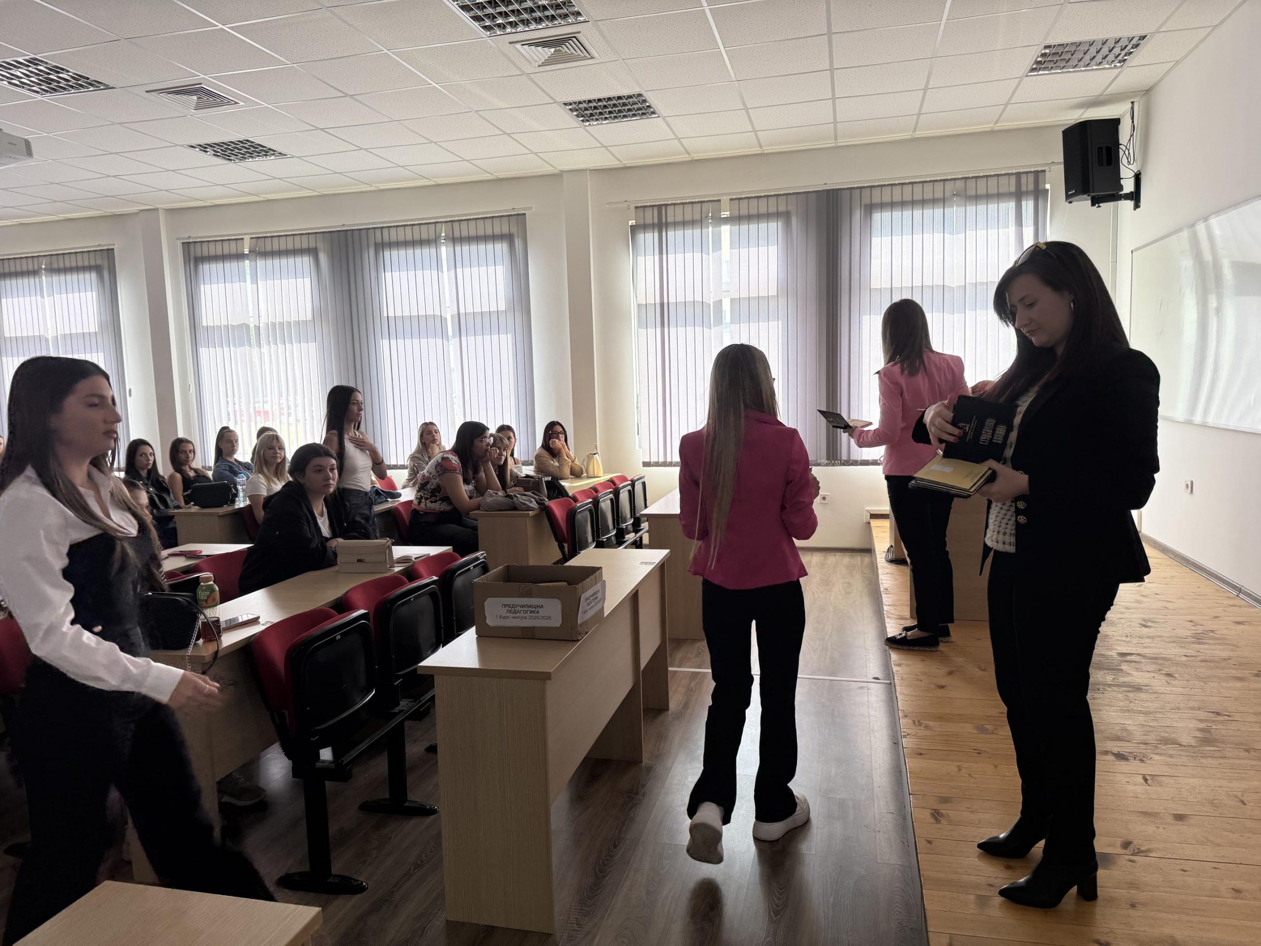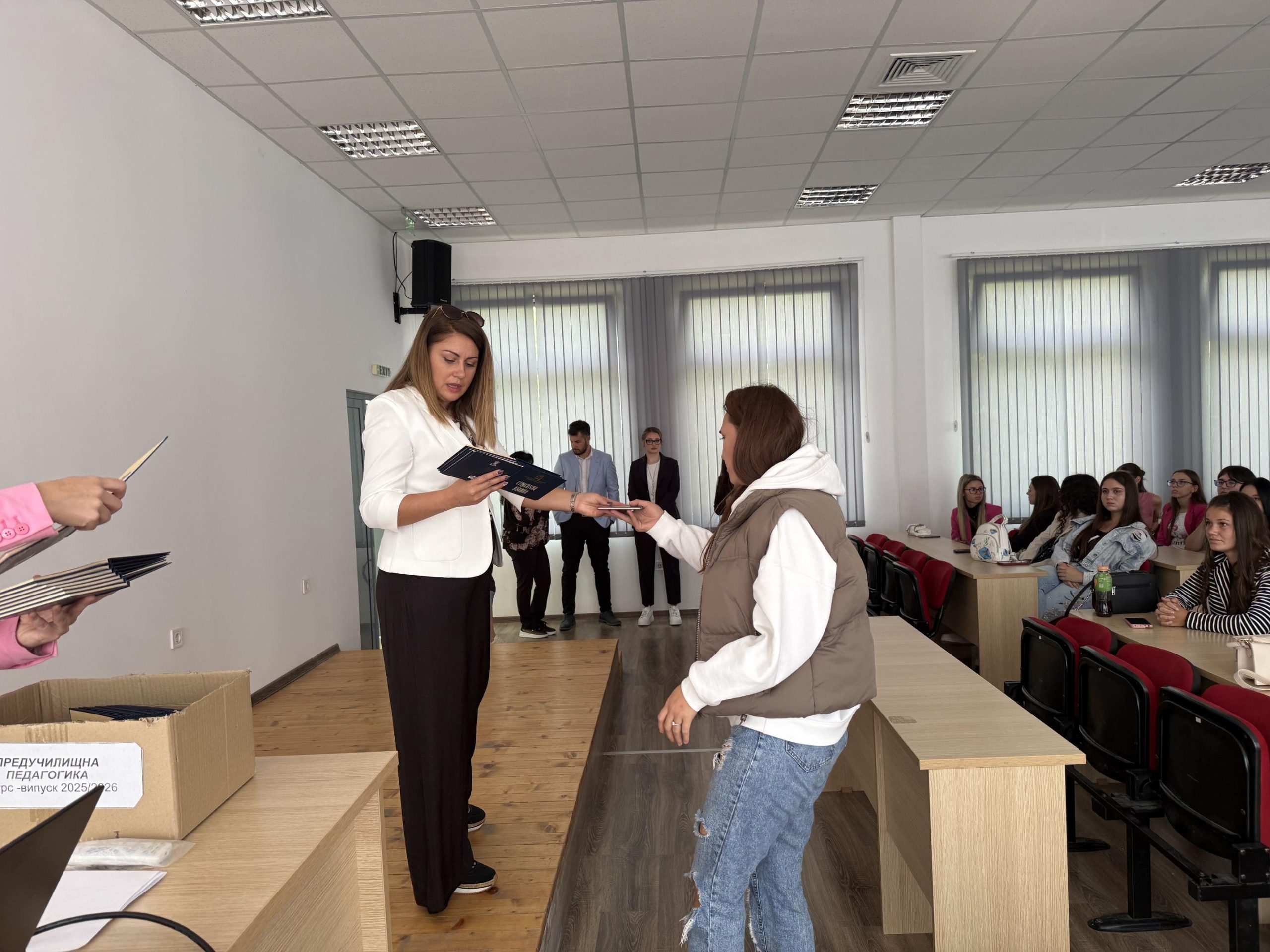 След церемонията първокурсниците от Педагогическия факултет се насочиха към Нова сграда, където ръководителите на катедри и координаторите на специалностите ги посрещнаха и раздадоха студентските книжки. Новоприетите студенти имаха възможност да се запознаят помежду си и с академичните си наставници.