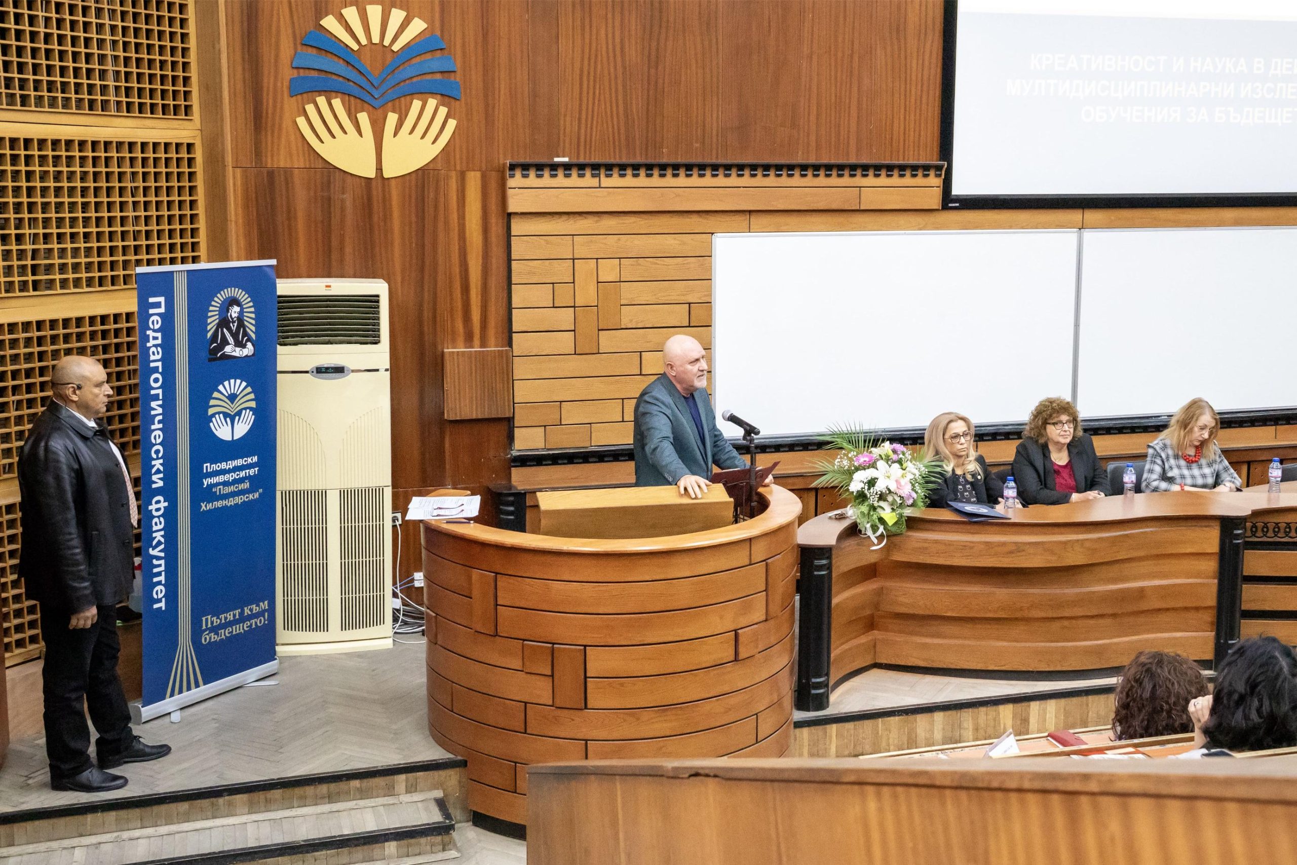 Проф. д-р Галин Цоков – доскорошен министър на образованието и науката и дългогодишен член на академичната общност на Педагогическия факултет – също отправи приветствие към участниците, като подчерта значението на прилагането на научните резултати директно в училищната среда. Поздравления поднесоха още проф. д.ф.н. Елена Николова – директор на филиала на ПУ в Смолян, и доц. д-р Маргарита Русева – декан на Факултета по икономически и социални науки, които акцентираха върху партньорството между факултетите и нуждата от свързани изследвания в социалните и образователните политики.